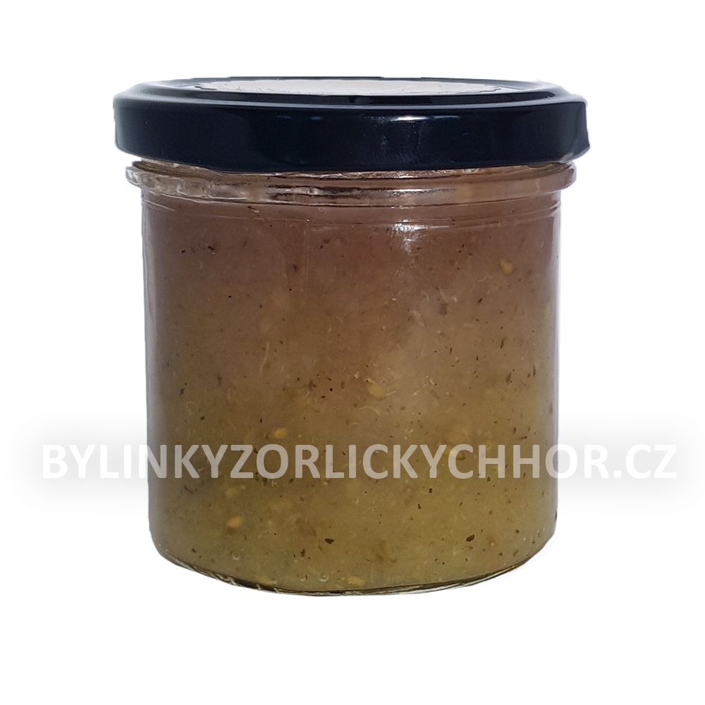 Angreštový džem s tymiánem v sobě spojuje šťavnatou kyselost angreštu a tymiánu, vypěstovaný v Orlických horách. Výborně chutná na koláčích nebo palačinkách, skvělá je i v kombinaci se sýrem.
